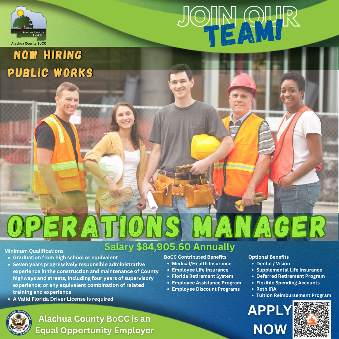 This is highly responsible administrative and supervisory work managing the Public Works Operations Division. Which is responsible for maintaining all County maintained roads and related infrastructure.