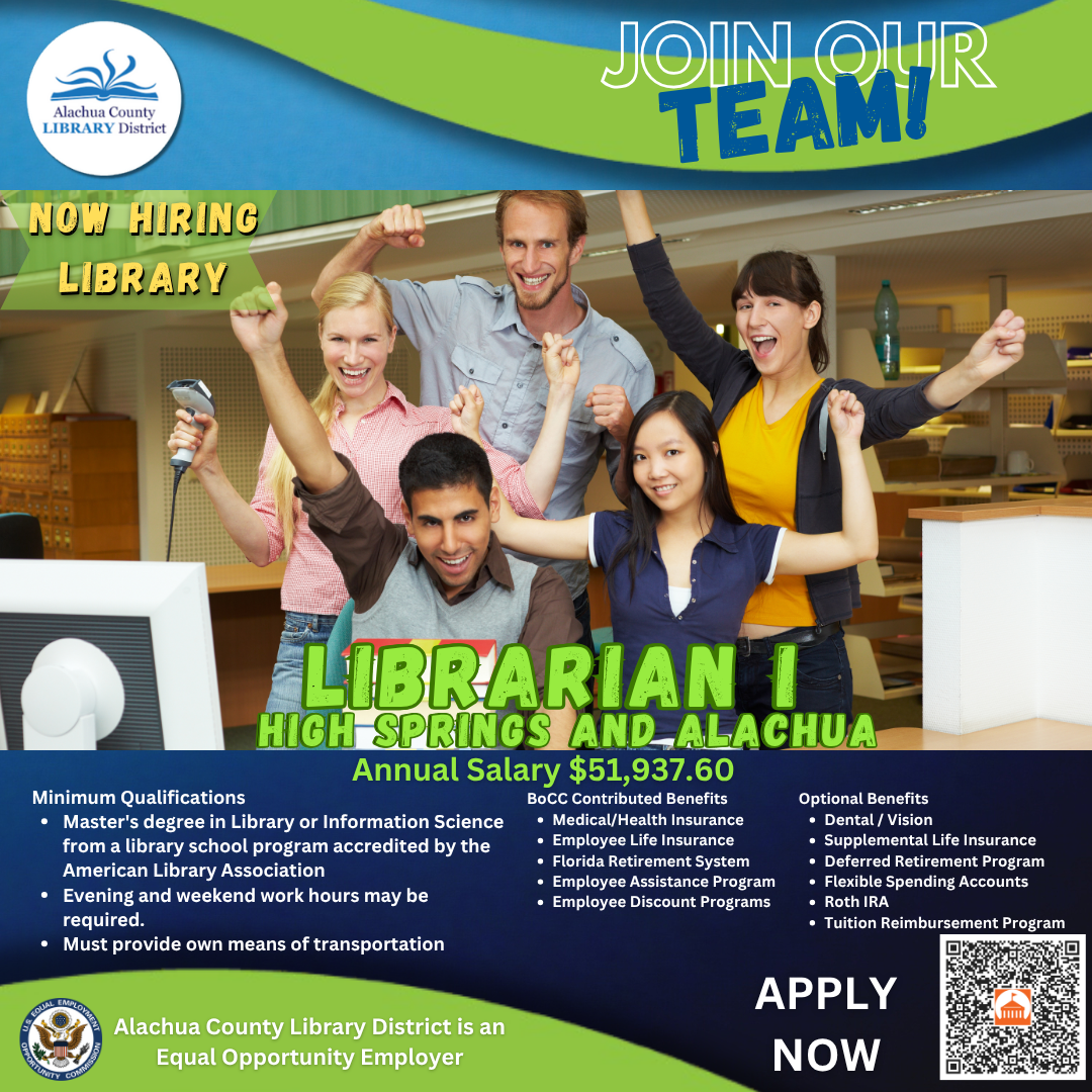 This is entry level independent, professional work with the Alachua County Library District maintaining library activities in a specific area of a library division. Work is distinguished from that of a paraprofessional by requiring professional judgment, and knowledge and techniques learned through formal professional education.
